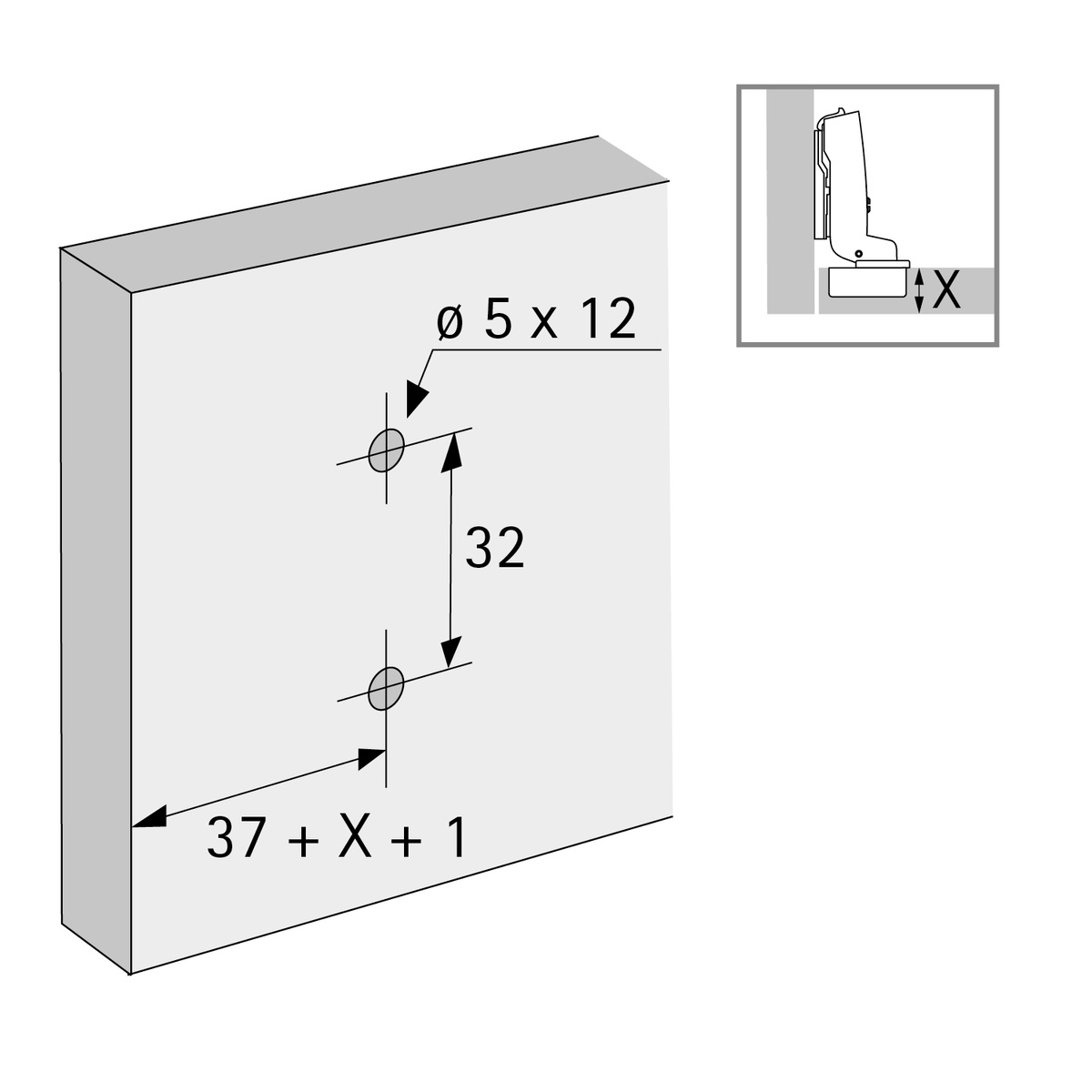 Křížová montážní podložka s rozpěrnými pouzdry pro vrtání D5x12mm, pro závěsy Sensys, Novisys a Intermat. Přímé seřízení výšky excentrem. Distance 3mm. Rozsah seřízení +/- 2mm. Ocel niklovaná.