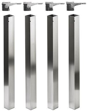 Čtyřhranná trubka nerezová 60 x 60 mm. Délka 700 mm. Seřízení +10 mm. Povrchová úprava: nerez kartáčovaná. Sada obsahuje: 4 ks stolová noha, upevňovací materiál.