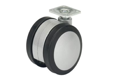 Ozdobné dvojkolečko s kluzným ložiskem. Průměr 75 mm, výška 86 mm, plotniška 38 x 38 mm, nosnost 80 kg. Těleso: polyamid stříbrný. Běhoun: termoplastická guma černá.
