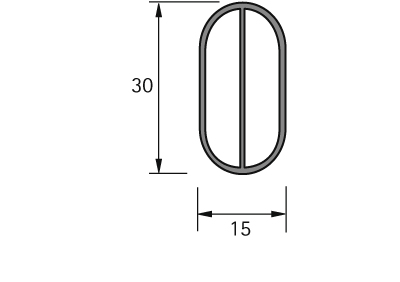 Oválná šatní tyč, rozměr 3000 x 30 x 15 mm.