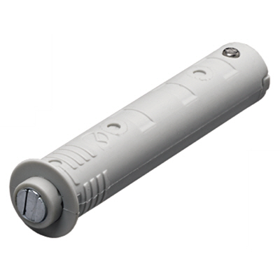 Silný. Montáž do otvoru průměru 10 mm a délky 70 mm, délka vysunutí 37 mm. Plast šedý.