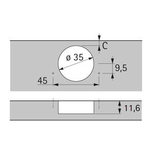 Naložený závěs Sensys 8687 pro bezúchytkové otevírání s nulovým přesahem, úhel otevření 165°, vrtání misky 45x9.5mm, montáž misky na vrut.