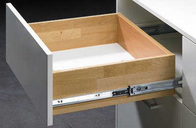 Kuličkový plnovýsuv pro dřevěné zásuvky, nosnost 35 kg. Push to open - k otevření zásuvky stačí lehce zatlačit na její čelo - bezúchytkové otvírání.Montáž na bok. Pomocí páčky lze výsuv rozdělit a zásuvku tak jednoduše vyjmout z korpusu. Montážní šířka 12,7 mm.