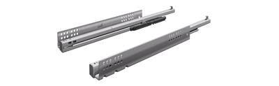 Plnovýsuv pro dřevěné zásuvky s drážkovaným bokem. Nosnost 50 kg. Silent System - tlumič integrovaný do výsuvu zajistí měkké a tiché dovírání zásuvky. Montáž nasunutím - zásuvka se položí na výsuvy a zasune se do korpusu. Spojky pro dřevěné zásuvky s drážkovanými boky se objednávají samostatně č.136297 1x a č.136298 1x.