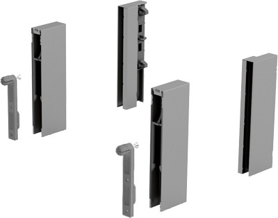 Pro výšku boků 94 a výšku zad 218 mm a pro výšku boků 126 a výšku zad 250 mm.Sada adaptérů DesignSide obsahuje: 1 pár - adaptér přední a zadní stříbrný včetně příchytek čela k zaražení a k našroubování.
