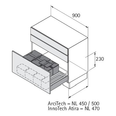 HETTICH 9132350 Odp. koš Bin.it Flex 900 mm 12+