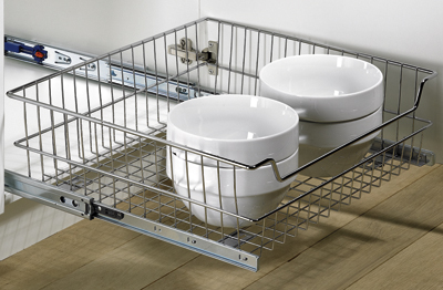 Vnitřní výsuvný koš se seřiditelnou šířkou, nosnost 35 kg, s kuličkovým plnovýsuvem a tlumením Silent System. Pro světlou šířku korpusu 435 - 470 mm. Minimální světlá hloubka korpusu 504 mm. Sada ovsahuje: 1 výsuvný koš, 1 kuličkový výsuv se Silent System.