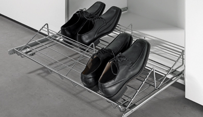 Pro mnontáž mezi boky korpusu. Plynulé seřízení šířky pro světlou šířku korpusu 735 - 808 mm. Nosnost 15 kg. Šířka police na boty 705 mm, hloubka 510 mm, výška 135 mm. Sada obsahuje: 1 ks výsuv na boty, 1 sada kulčkový výsuv s tlumením Silent System.
