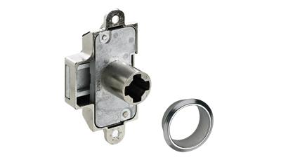 Cylindrický skříňový zámek Prestige 2000. Průměr 16,5 mm. Lze přestavit na pravý nebo levý. Komplet s rozetou. Vzdálenost vrtání 25 mm. Niklovaný.