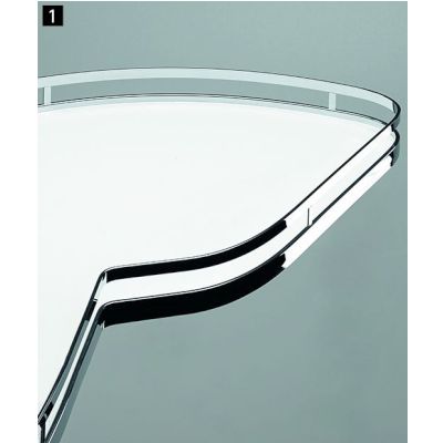 Sada polic Arena STYLE chrom levá pro řešení spodní rohové skříňky (tzv.slepého rohu). LeMans II. K LeMans II je možné přidat externí tlumič který polici dotáhne, při zavření utlumí a zabrání rázu. Dno s protiskluzovou povrchovou úpravou. Pro korpus 900mm. Montáž tlumiče na vnější rameno. Vnitřní rozměry korpusu: šířka: 860, hloubka 500, výška: 600-750 případně 720-900mm. Minimální rozměr dveří 411-418 mm. Montážní tyč + uchycení na bok - 209344 (600-750mm), Nosnost police 25 kg. Sada obsahuje: 2 ks polic, 2 ks otočná mechanika, 1 ks vrtací šablona Externí tlumiče levé obj.č.209205 sada 2 ks.