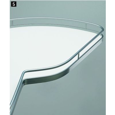Sada polic Arena CLASSIC stříbrných levých pro řešení spodní rohové skříňky (tzv.slepého rohu) LeMans II. Dno s protiskluzovou povrchovou úpravou v šedém provedení. K LeMans II je možné přidat externí tlumič který polici dotáhne, při zavření utlumí a zabrání rázu. Pro korpus 900mm. Montáž tlumiče na vnější rameno. Vnitřní rozměry korpusu: šířka: 860, hloubka 500, výška: 600-750 mm. Minimální rozměr dveří 411-418 mm. Montážní tyč + uchycení na bok kospusu č.209344. Nosnost police 25kg. Sada obsahuje: 2 ks polic, 2 ks otočná mechanika, 1 ks vrtací šablona. Externí tlumiče levé obj.č.209205 sada 2 ks.