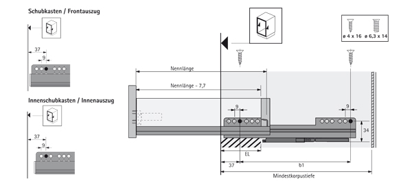 HETTICH 9193549 Quadro 25 470 mm EB 9,5 SiSy L+P