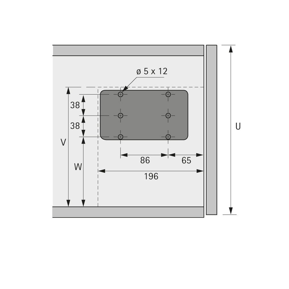 K přišroubování na bok korpusu, vpravo nebo vlevo. Horizontální a vertikální použití v závislosti na prostoru. Výklopná dvířka musí být dole osazena miskovými závěsy nebo závěsy pro sklopná dvířka (objednejte zvlášť). Krytky je třeba objednat zvlášť.