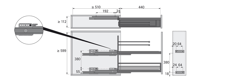 HETTICH 9207580 čelní výsuv Arena Style 90°, chrom