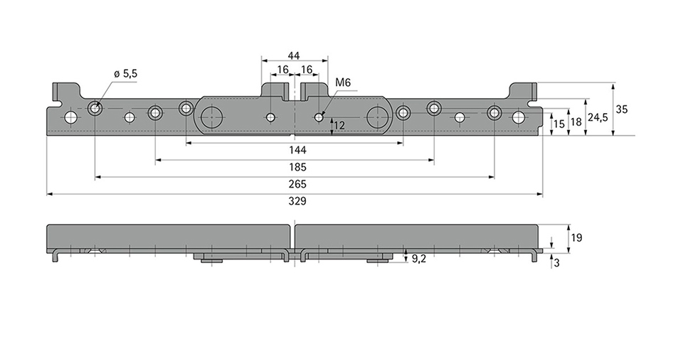 Skládací kloub doporučujeme připevnit zvnějšku rámu (o tloušťce 20mm) pomocí tří šroubů (délka 20mm) a dvou dalších se zápustnou hlavou M6x30mm.