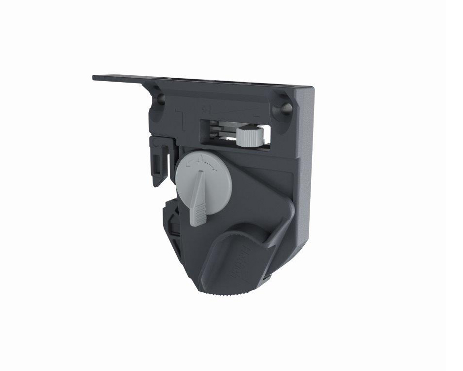 Pro bezpečné beznářaďové spojení výsuvu Quadro 4D a dřevěné zásuvky. Beznářaďové seřízení výšky max.+2 mm a stranové seřízení max.+/-1,5 mm. Plast šedý.