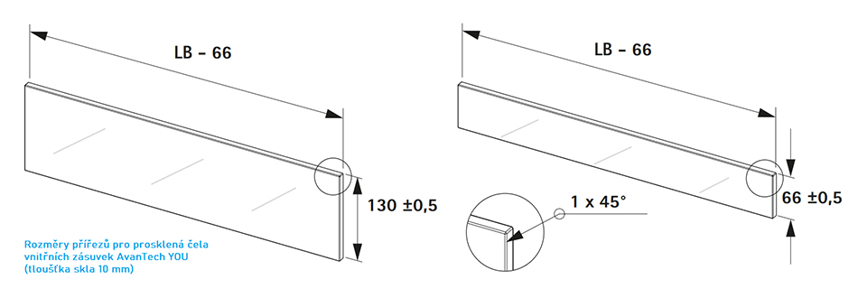Sada příchytů systému AvanTech You pro čelo vnitřní zásuvky se sklem. Pro výšku bočnice 187 mm. Barva bílá. Sada obsahuje: čelní říchyt L+P, krytka L+P, čelní stabilizátor. Určeno pro Inlay bočnice a prosklené čelo, nelze použít pro plné bočnice a/nebo plné čelo.