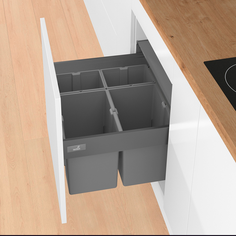 Rám pro odpadkový koš nesený nahoře pro zásuvku InnoTech Atira, výška 70mm, NL470mm. Namísto dna zásuvky se vsadí rám InnoTech Pull, rám pak lze individuálně osadit různými nádobami a příslušenstvím. Nádoby se objednávají zvlášť. Jednotlivé prvky zásuvky InnoTech Atira je třeba objednat zvlášť. Volitelně je také možné použití s plnovýsuvem Quadro V6 PTO. Ocel, prášková barva antracitová.