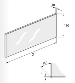 Skleněná výplň pro 187mm Inlay bočnice AvanTech YOU. Čiré sklo tloušťky 10mm se satinovanou hranou zabroušenou 1×45°.