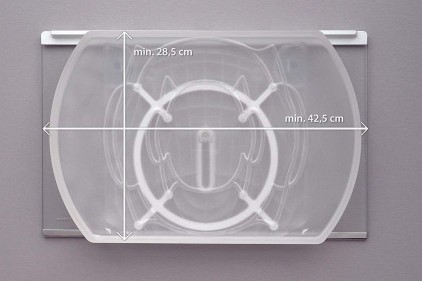 Otočná police do lednice či jiných úložných prostor s neomezeným otáčením o 360°. Usnadňuje přístup k zásobám uloženým u zadní stěny lednice/korpusu. Lze ji snadno vyjmout a umýt v ručně nebo v myčce. Rozměry police ŠxH=420x280mm. Minimální instalační rozměry jsou 425x285mm. Připevnění pomocí přísavek (součást dodávky), oboustranné pásky, suchého zipu 3M Dual-Lock nebo vrutů (do úložných skříněk). Nosnost 8kg. Vyrobeno z akrylu.