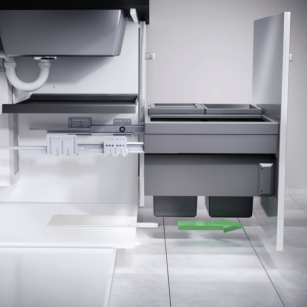 Doplňkový systém vhodný pro dolní skříně šířky od 300 do 1200 mm. Montáž na přední část dna korpusu. Nízkonapěťové zařízení (5V) s konektorem USB-C, včetně napájecího kabelu 2m. Jednoduchá obsluha laserovým nožním senzorem nebo hlasovým ovládáním. Nastavení a konfigurace přes webový prohlížeč. Vestavěné orientační osvětlení LED, lze stmívat i vypnout. Ochrana proti kapající vodě podle certifikace IP21. Kompatibilní s hlasovým ovládáním Alexa. Určeno pro 2,4 GHz.