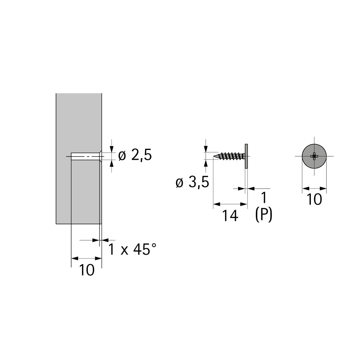 HETTICH 9386068 protikus PTO k našroubování, D10x1mm, vrtání D2,5x10mm
