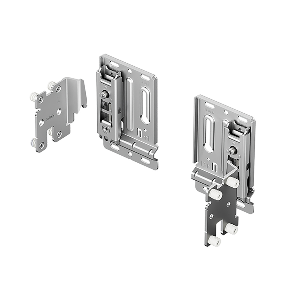 Sada závěsného kování SAH 500 s pojistkou proti vyvěšení. Skládá se z nástěnného prvku (L/P) a korpusového prvku (L/P). Nástěnný prvek je určen pro přišroubování na stěnu - nutno použít kotevní materiál dle konstrukce stěny. Korpusový díl je určený k zalisování (automatizovaná montáž) nebo naražení do korpusu (ruční montáž). Integrovaná pojistka proti vyvěšení zabraňuje nechtěnému sejmutí skříňky ze stěny (v souladu s DIN EN 14749). Potřebná výška přizvednutí pro sejmutí korpusu ze závěsu je 6,5mm.