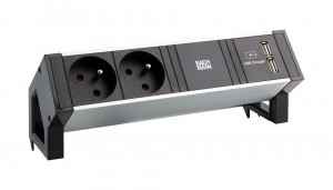 K-BACHMANN 937.134 Desk 2, alu black, 2x230V, 2x USB nabíjecí PLUS KABEL