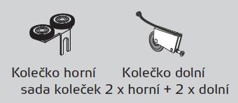 Sada vozíků na jedno křídlo včetně šroubů: 2x dolní + 2x spodní vozík pro úchytovou lištu Comfort - DTD 10mm.