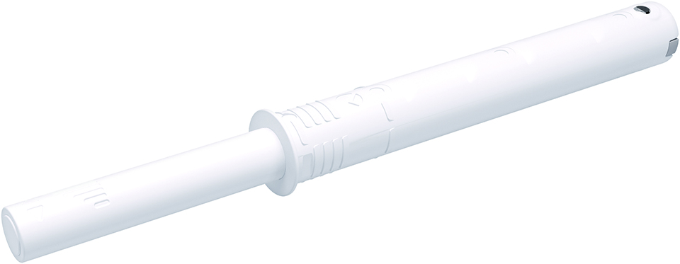 Dlouhý K-PUSH pístek standardní síly pro bezúchytkové otevírání nábytkových dvířek. Vhodné pro použití se závěsy se zavírací pružinou (bez tlumení). Délka vysunutí pístu 37mm. Barva viz název produtku. Určeno pro zavrtání do hrany (vrtání D10x70mm).