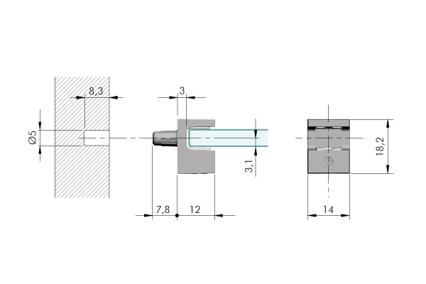 Elegantní policová podpěra pro skleněné police 5-6mm. Jednoduchá montáž i demontáž. Lesklý chrom.