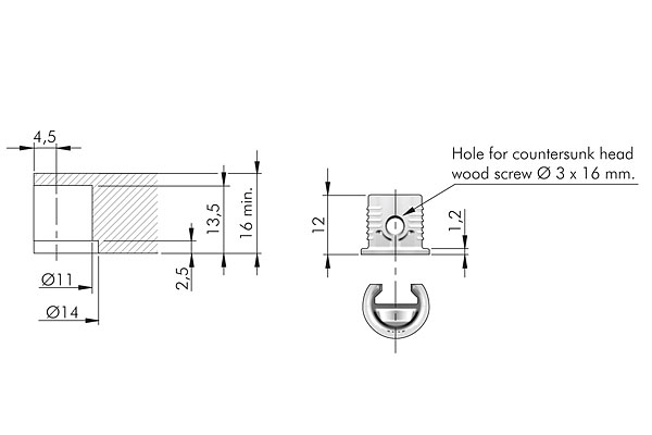 Elegantní policová podpěra pro dřevěné police. Vložená verze. Minimální tloušťka police 16mm. Splňuje evropskou normu EN 14749/05.