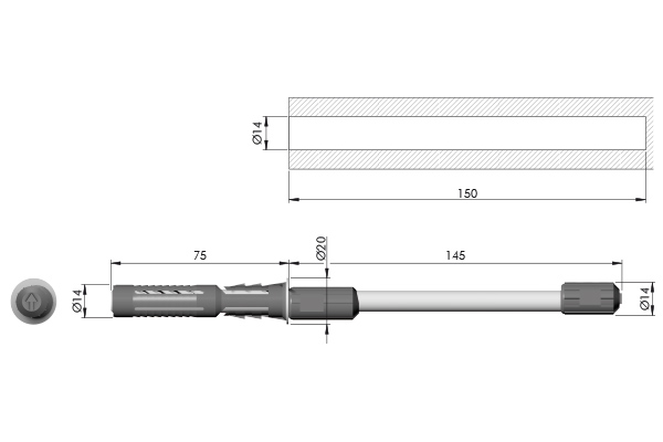 Max. nosnost (včetně police) 25kg na 2 trny. Doporučená rozteč mezi 2 trny 45 - 50 cm. Průměr vrtání: do zdi - 14mm, do police - 14 mm. Nastavitelná výška +- 2mm
