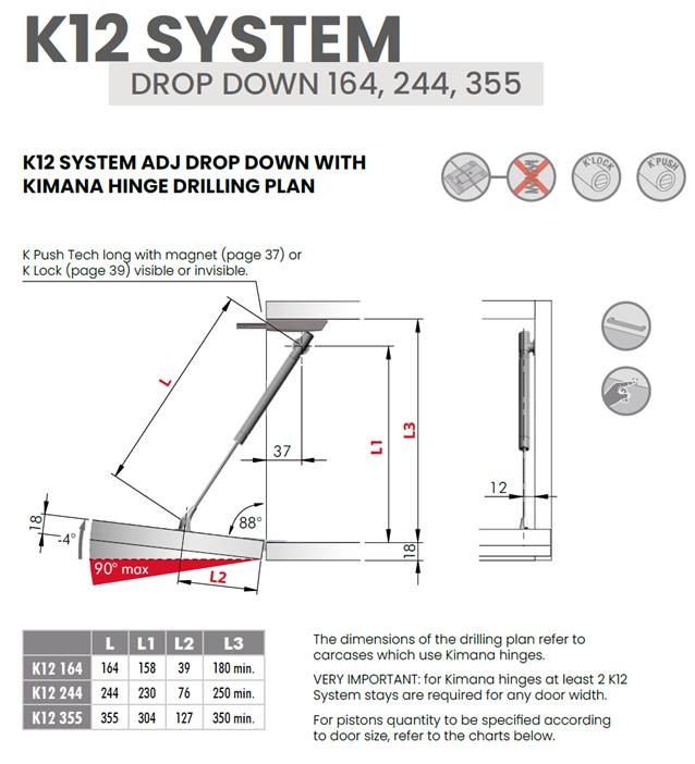 Plynokapalinová spodní klopna K12 v barvě "grafit" včetně příslušenství. Minimalistický design, průměr pístu pouze 12mm. Doporučujeme v kombinaci s bezpružinovými závěsy KIMANA. V kombinaci se systémem K-PUSH možno použít také pro bezúchytkové otevírání.