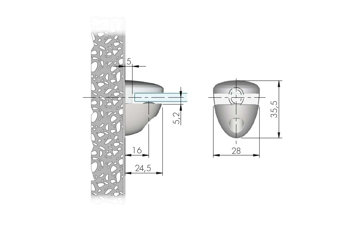 Tloušťka police 5-6 mm. Nosnost 1 ks podpěry je 3 kg(včetně skla) při šířce police 150 mm.