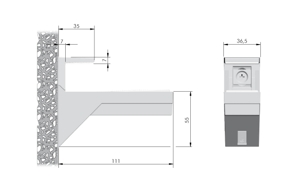 Maximální nosnost jedné podpěry (včetně police) záleží na hloubce police viz.technický nákres na webových stránkách a v katalogu. Tloušťka police: 25 - 50 mm. Vzdálenost police od zdi - 7,5mm.