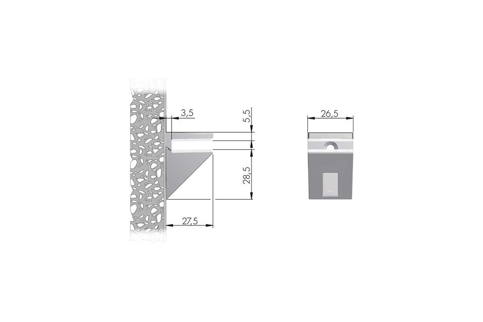 Maximální nosnost jedné podpěry (včetně police) záleží na hloubce police viz.technický nákres na webových stránkách a v katalogu. Tloušťka police: 5-10 mm. Vzdálenost police od zdi - 4mm.