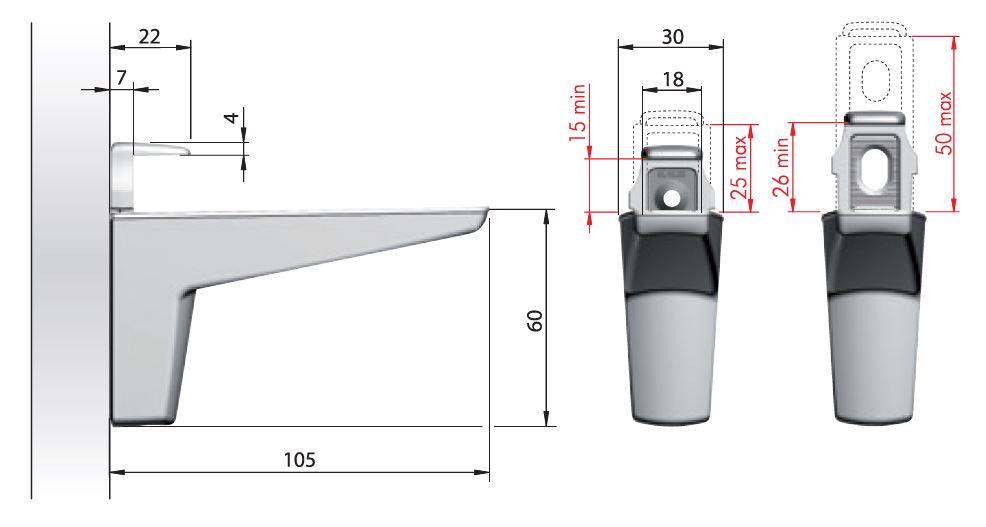 Pro tloušťku police 15 - 50 mm.