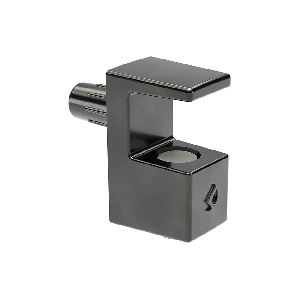 Elegantní policová podpěra pro skleněné police 5 - 6 mm, s pinem. Jednoduchá montáž i demontáž. Plast + nikl. Vrtání otvoru - 5 mm. Povrchová úprava - černý nikl.