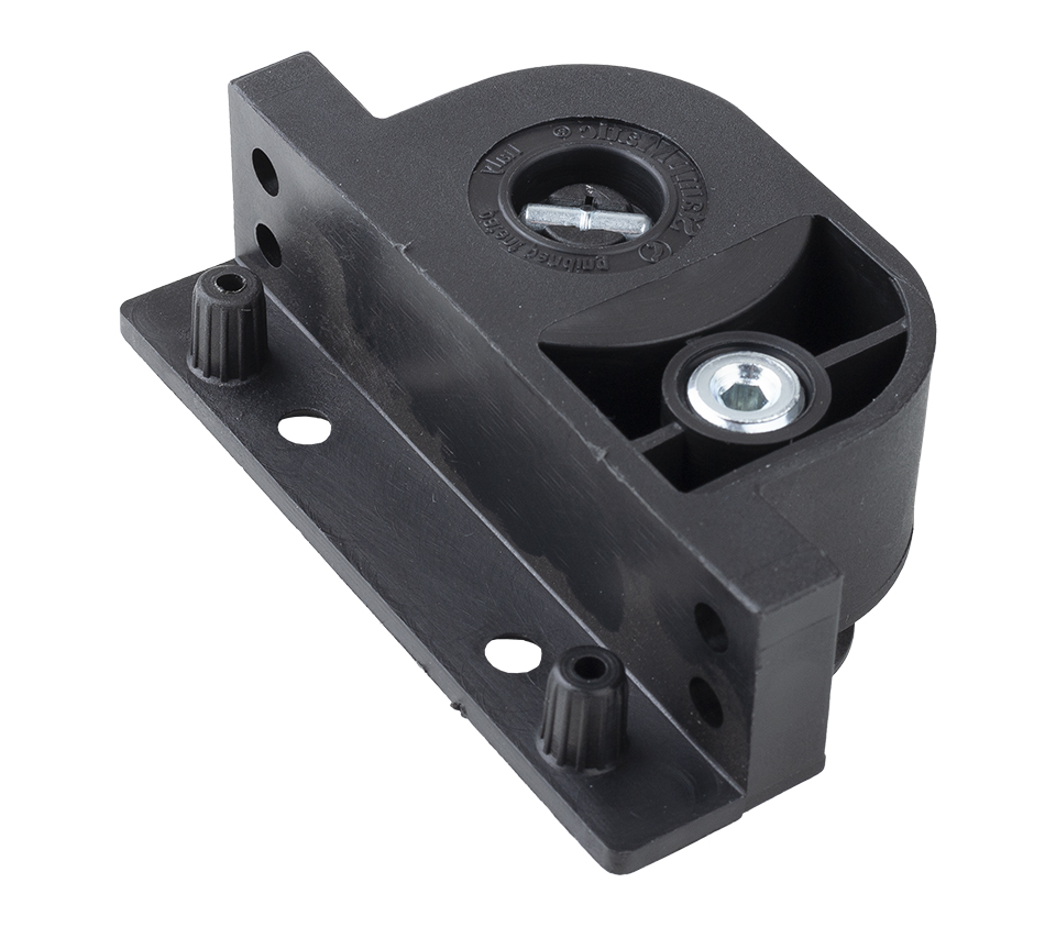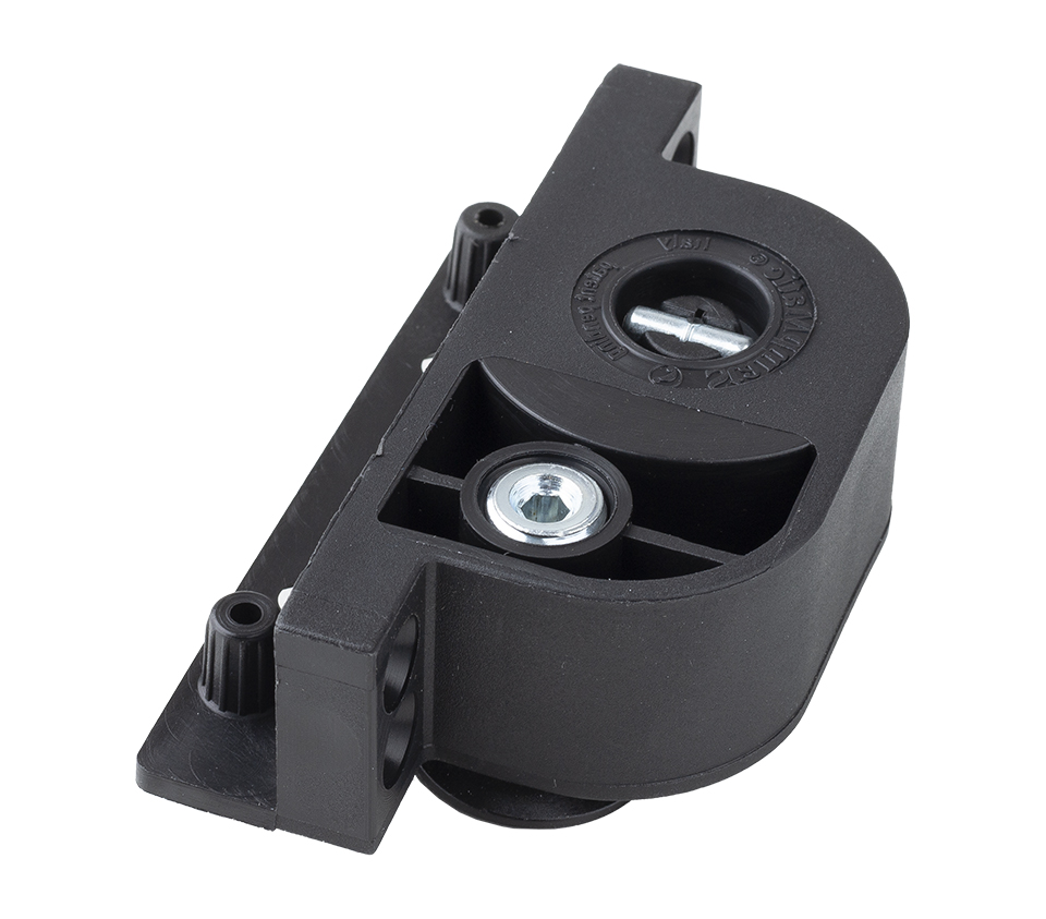 Stavěcí nožka s kolečkem, včetně narážecích pinů do korpusu na boku, barva černá