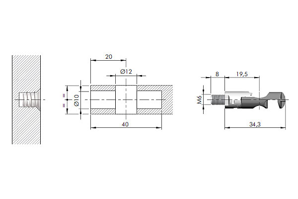 s vysokou upevňovací kapacitou, pro montáž se závrtnou maticí M6.