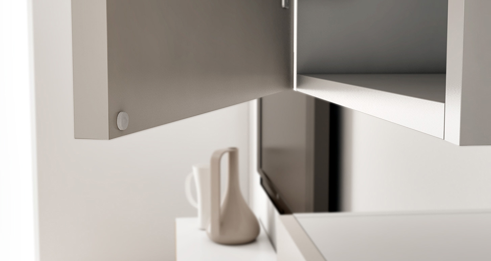 Bi-materiál je jedinečné řešení, které zabraňuje hlučnému bouchání dveří skříněk.