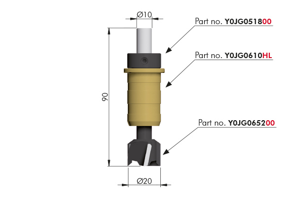 IF-vrták 20x90mm s příslušenstvím pro vrtací šablonu