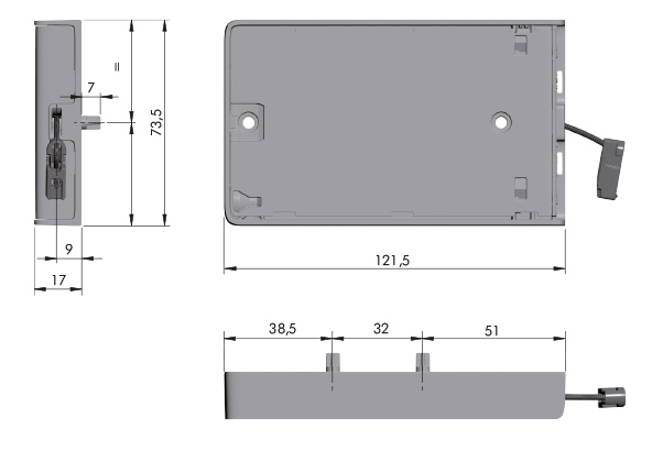 Součástí balení je i příchyt na dveře s povrchovou montáží (bez nutnosti zafrézování) i zafrézovaný příchyt. Pro úzké hliníkové rámečky je možno použít zafrézovaný příchyt s adaptérem pro hliníkové rámečky.