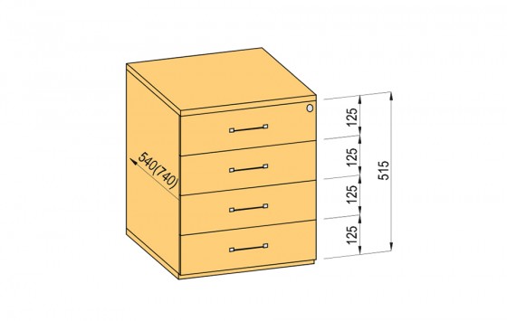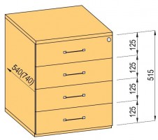 K-BBP kontejner 540/292mm typ 7/verze 3 zásuvka kov celovýsuv dotah