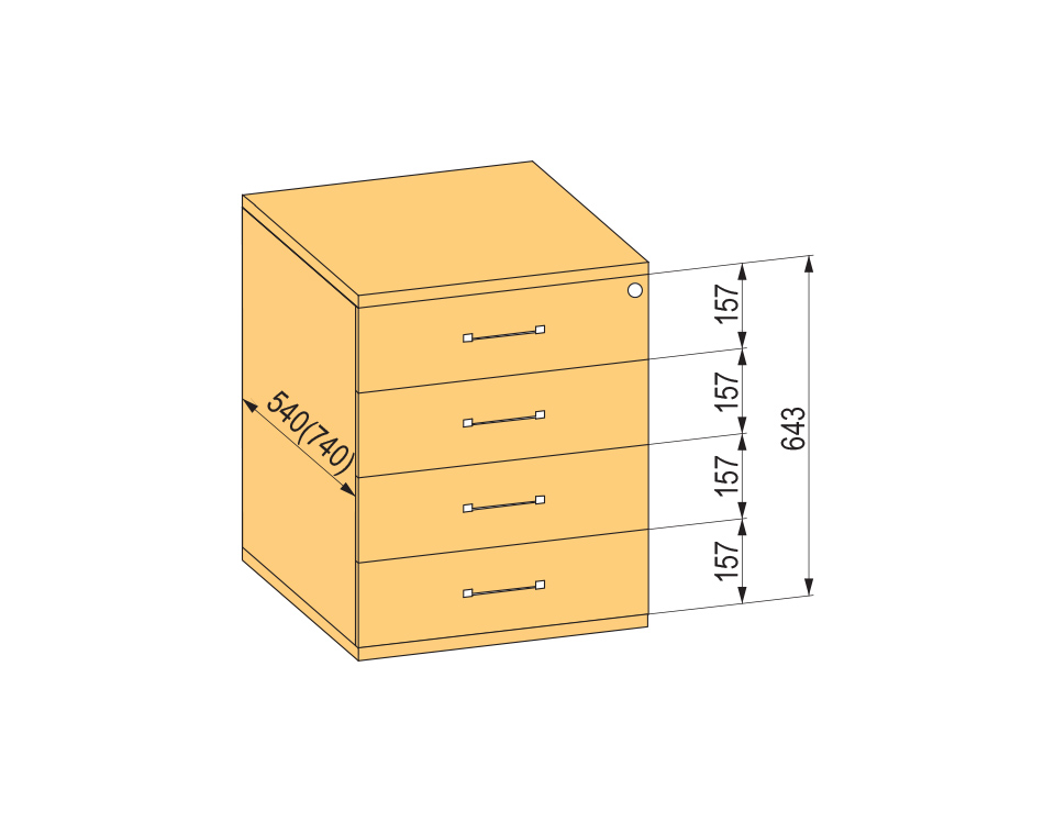 K-BBP kontejner 540mm typ 8/V 5 zásuvka plast částečný výsuv dotah