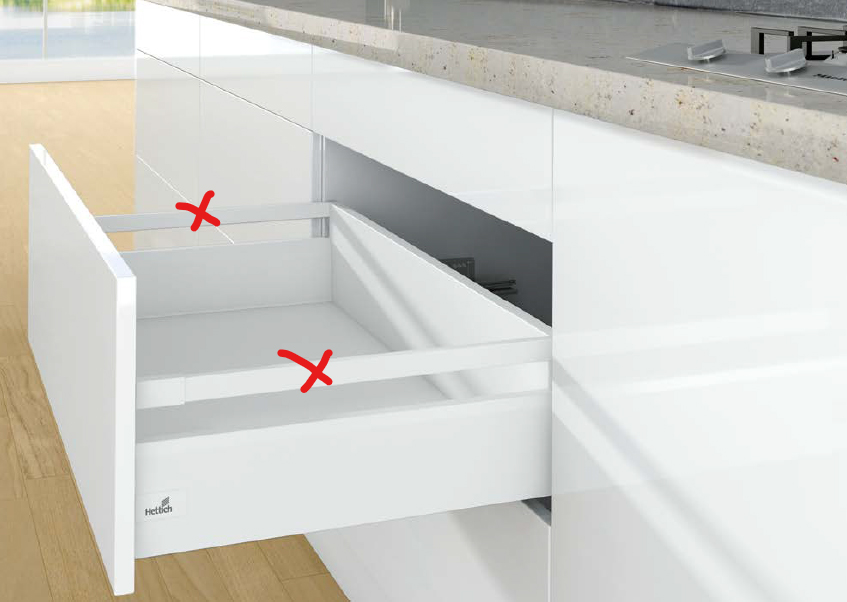 Kování pro čelní zásuvku ArciTech v bílé barvě, hloubka výsuvů 450mm, výška bočnice 126mm, celková výška 186mm, nosnost výsuvů 60kg, tlumení SiSy. Sada obsahuje 1 pár bočnic, 2ks čelního kování (hmoždínka), 2ks krytky Hettich, 2ks držáky zad 186mm. Zásuvku je nutno doplnit o relingy, nebo TopSide, nebo DesignSide. Pro bezúchytkvé otevírání P2OS je nutno dopnit o správný modul P2O, v případě, že je zásuvka širší než 600mm je zapotřebí přidat synchronizační tyč (318279) krácení= vnitřní šířka korpusu-2xEB-207.