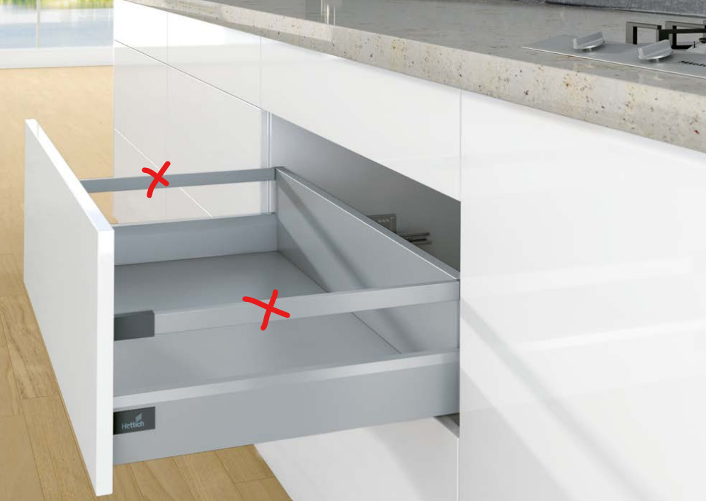 Kování pro čelní zásuvku ArciTech ve stříbrné barvě, hloubka výsuvů 270mm, výška bočnice 94mm, celková výška 186mm, nosnost výsuvů 40kg, tlumení SiSy. Sada obsahuje 1 pár bočnic, 2ks čelního kování (hmoždínka), 2ks krytky Hettich, 2ks držáky zad 186mm. Zásuvku je nutno doplnit o relingy, nebo TopSide, nebo DesignSide. Pro bezúchytkvé otevírání P2OS je nutno dopnit o správný modul P2O, v případě, že je zásuvka širší než 600mm je zapotřebí přidat synchronizační tyč (318279) krácení= vnitřní šířka korpusu-2xEB-207.