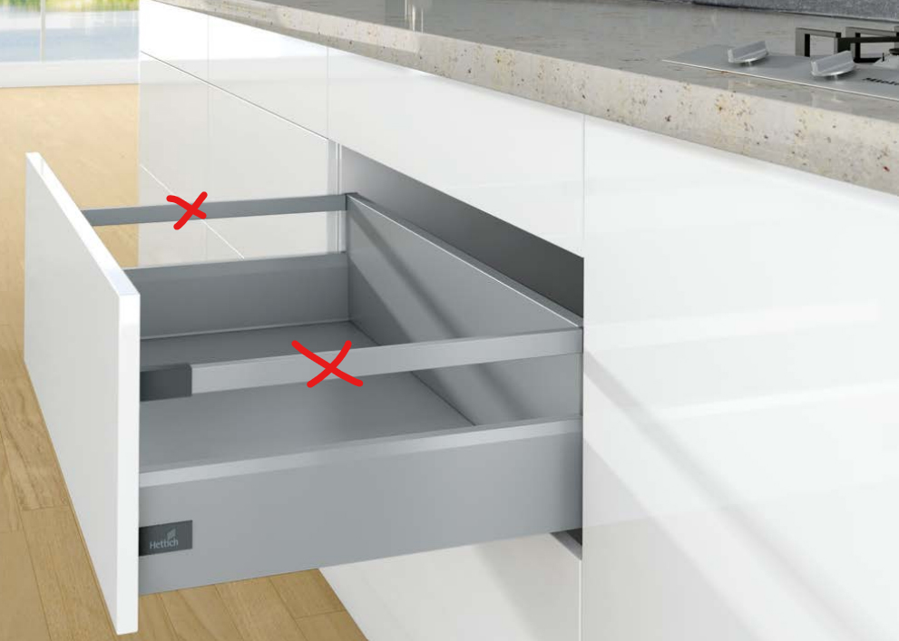 Kování pro čelní zásuvku ArciTech ve stříbrné barvě, hloubka výsuvů 300mm, výška bočnice 126mm, celková výška 218mm, nosnost výsuvů 40kg, tlumení SiSy. Sada obsahuje 1 pár bočnic, 2ks čelního kování (hmoždínka), 2ks krytky Hettich, 2ks držáky zad 218mm. Zásuvku je nutno doplnit o relingy, nebo TopSide, nebo DesignSide. Pro bezúchytkvé otevírání P2OS je nutno dopnit o správný modul P2O, v případě, že je zásuvka širší než 600mm je zapotřebí přidat synchronizační tyč (318279) krácení= vnitřní šířka korpusu-2xEB-207.