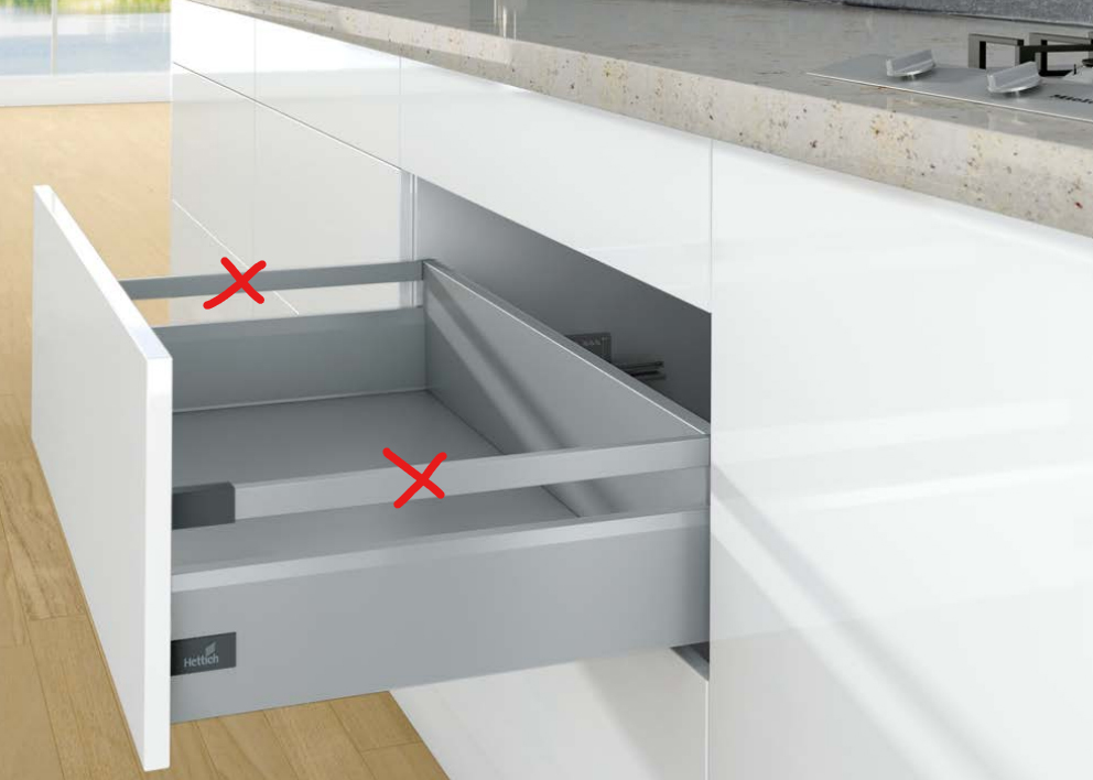 Kování pro čelní zásuvku ArciTech ve stříbrné barvě, hloubka výsuvů 450mm, výška bočnice 126mm, celková výška 186mm, nosnost výsuvů 40kg, tlumení SiSy. Sada obsahuje 1 pár bočnic, 2ks čelního kování (hmoždínka), 2ks krytky Hettich, 2ks držáky zad 186mm. Zásuvku je nutno doplnit o relingy, nebo TopSide, nebo DesignSide. Pro bezúchytkvé otevírání P2OS je nutno dopnit o správný modul P2O, v případě, že je zásuvka širší než 600mm je zapotřebí přidat synchronizační tyč (318279) krácení= vnitřní šířka korpusu-2xEB-207.